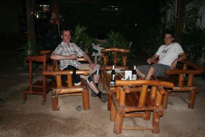 werden wir uns nun mal dem Matratzenhorchen hingeben. Morgen wird sicherlich nen anstrengender Tag. Wir wollen gegen 8 Uhr spaetestens aufbrechen um ueber die nahe gelegene Grenze nach Kambodascha zu gelangen und dann die 8 stuendige Fahrt nach Siam Reap auf uns zu nehmen. Wenn man bedenkt das diese Stadt nur 160km von hier entfernt ist, schwant uns da boeses. Wir werden es euch dann berichten.