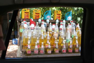 Auch das Tanken war ein Erlebnis, oder hat schonmal jemand sein Benzin in 1,5l Cola und Fantaflaschen eingekauft und dann mit dem Trichter ins Auto gekippt? Doch irgenwann ist auch mal die "schoenste" Zeit vorbei und wir sind nach insgesamt 4,5Stunden Fahrt in Siam Reap angekommen.
