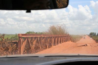 wechselten sich mit abertausenden von kleinen und groesseren Schlagloechern ab, und unser Fahrer hielt immer kraeftig drauf zu. Unsere Koepfe schlugen ein um das andere mal an das Dach unseres Taxis, wenn der Fahrer mal wieder etwas zu schwungvoll die zahlreichen Schlagloecher nahm.